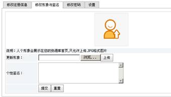 第一:更新形象 点击【浏览】,从计算机中选择要作为形象的图片,尺寸为120像素*120像素,如果图片尺寸不合乎要求,系统将缩小或放大图片以满足要求。选择后,点击【上传】将图片上传到服务器中,图片上传成功。