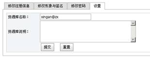 修改设置中,包括用户形象、资源库名称及资源库说明。
