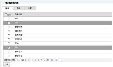 资源订阅,是针对用户的关注点,满足用户的使用需求,提供的一种个性化资源服务。资源库内的资源最大特点就是:种类齐全、形式多样、数量庞大。用户要想在如此海量的资源库里查找、使用自己关注的内容确实不是一件容易的事,通过资源订阅,可以一目了然的了解到满足自己需要的资源。(特别注意:每次加载页面时,系统会将用户选择过的资源分类自动勾选,如果用户想退订该分类,则只需要将勾选去掉后点【订阅】按钮保存新的订阅分类即可。