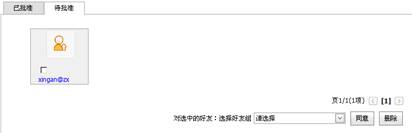 第二:在【待审批】好友列表中为等待审批的好友,选择要审批通过的好友名称前的复选框,为选中的好友选择所属好友组后,点击【同意】,操作成功后,好友信息将移动到【已批准】好友列表中显示。与该好友已互为好友,您的信息也将出现在对方【已批准】好友列表中。如果不同意与该好友请求,则选中该好友信息后点击【删除】按钮,该好友信息被删除同时系统将自动发短信通知对方审批情况。