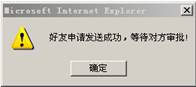 第一:添加好友,输入对方用户名,点击【确定】,完成操作会有相应提示反馈信息,如图2-1-7-1-3。系统会自动发送好友请求短信给对方,并且发送方的信息会出现在对方【待批准】好友列表中,如图2-1-7-1-2。
