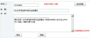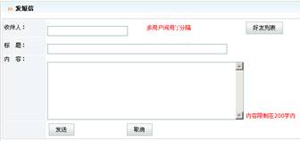 限于好友间互发短信。可同时多人发送。可手动输入好友名称也可通过【好友列表】进行选择。
