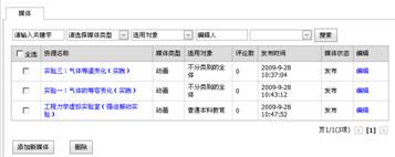 第二:点击【删除】,此功能需要在单独点选了某一媒体资源前面的“复选框”或点选列表表头的“全选”复选框后操作。被选择的资源将被删除。