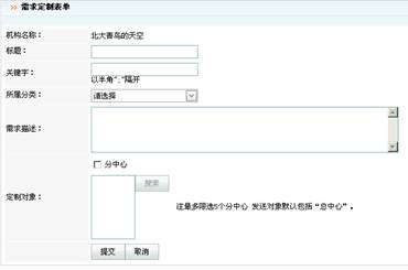用于添加新的定制记录,提供选择其他地区中心的功能,如果不选择,提交后,默认向总中心添加记录。