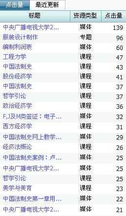 按资源点击量排序的列表