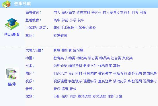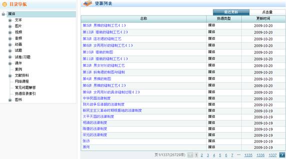 点击图5-1-1-1-3相应的分类名称进入图5-1-1-1-4资源导航列表,左侧为目录分类,右侧为该目录下的资源列表,点击资源名称进入该资源的信息页面。